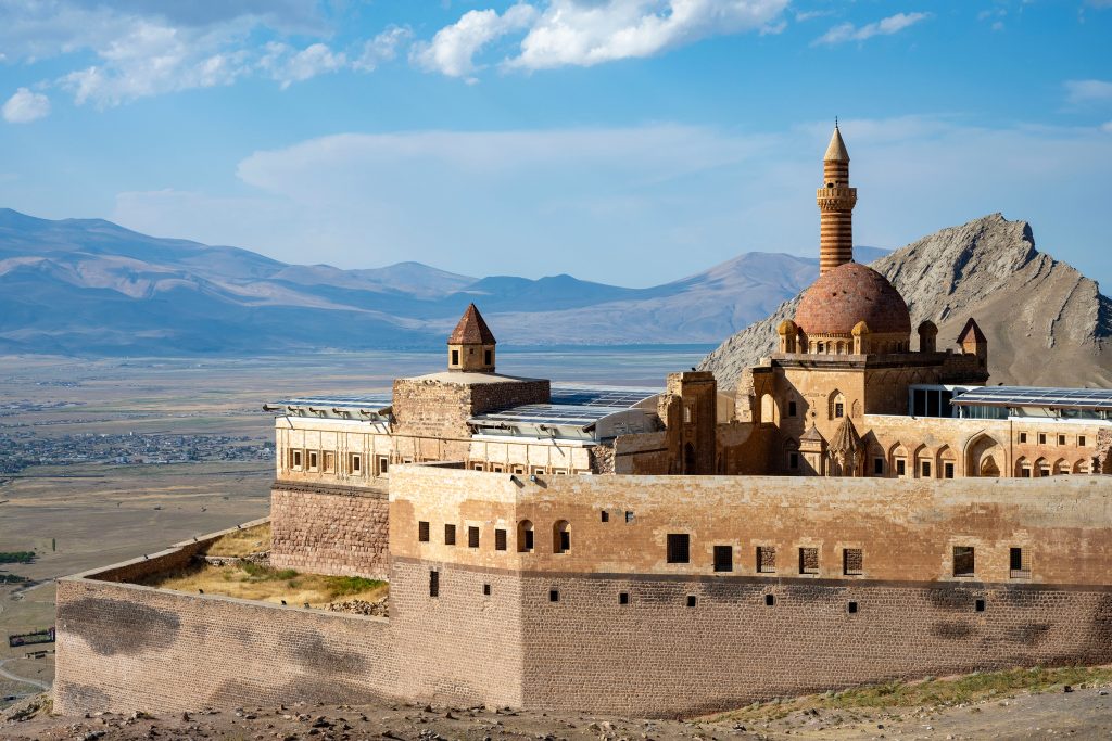 Tras el desayuno descenderemos hasta el punto de recogida a 2.400m. Seguido, traslado a Dogubeyazit donde disfrutaremos de una tarde cultural. Posibilidad de visitar el Palacio de Ishak Pasar o las mezquitas de la ciudad.