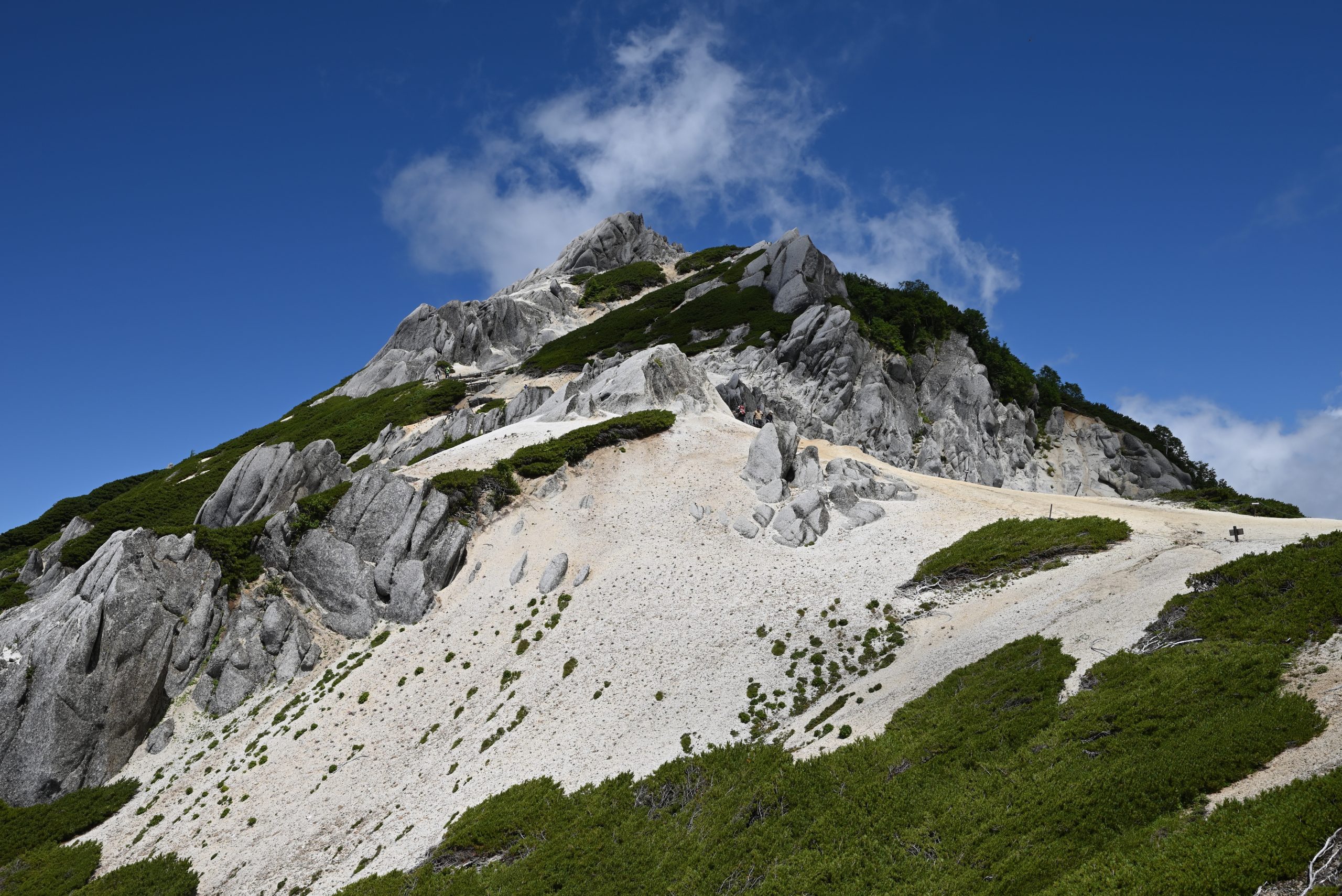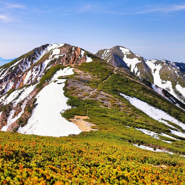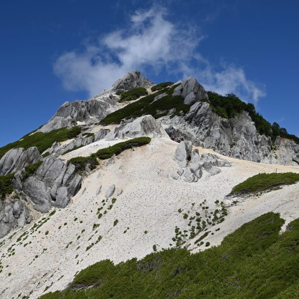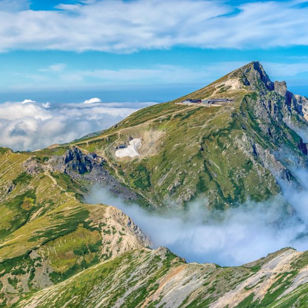 La jornada incluye el paso por montes como Otensho y Nishidake, con posibilidad de coronar pequeñas cumbres secundarias. El paisaje es puro Japón alpino: afilado, mineral, silencioso. La vegetación desaparece y el horizonte se abre en todas direcciones.
