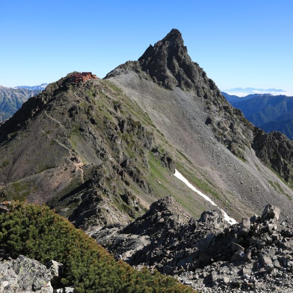 La ruta avanza por una cresta espectacular, con tramos expuestos y vistas continuas sobre el macizo del Hotaka y los valles profundos de Kamikochi. El sendero exige atención y buen ritmo, pero regala una de las travesías más bellas de los Alpes del Norte.