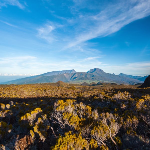 Este itinerario, que atraviesa la isla de norte a sur, permite descubrir sus majestuosos circos volcánicos de erosión (Mafate, Cilaos y Salazie), alcanzar la cumbre del Piton des Neiges (3.070 m), la montaña más alta del océano Índico, y caminar muy cerca del Piton de la Fournaise, uno de los volcanes más activos del planeta.
