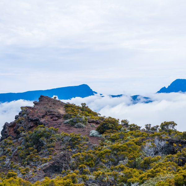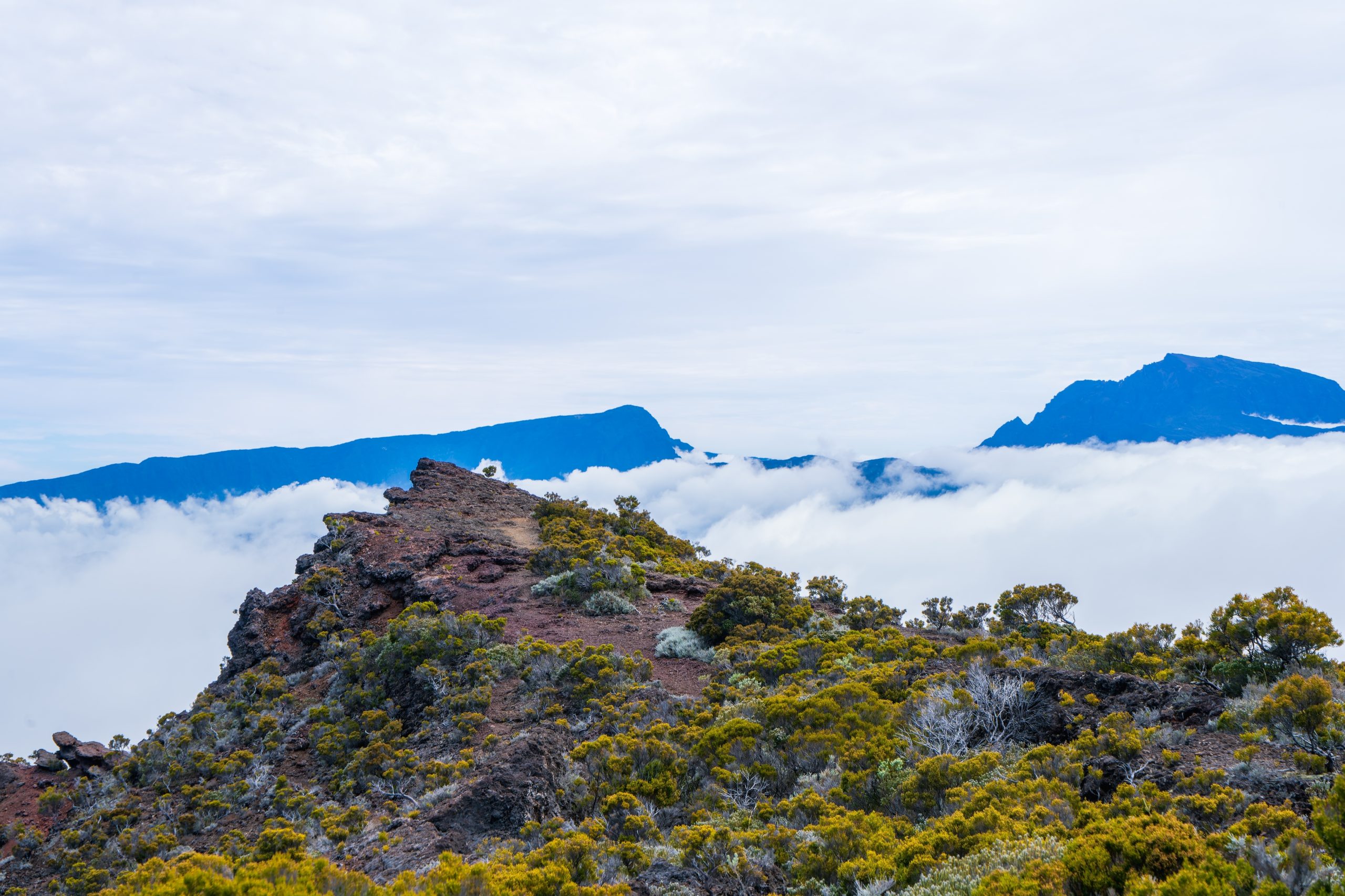 El ascenso culmina en la cumbre del Piton des Neiges (3.070 m), donde la vista se extiende sobre los tres circos de la isla (Mafate, Cilaos y Salazie) y, en días claros, hasta el océano.