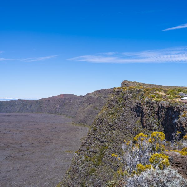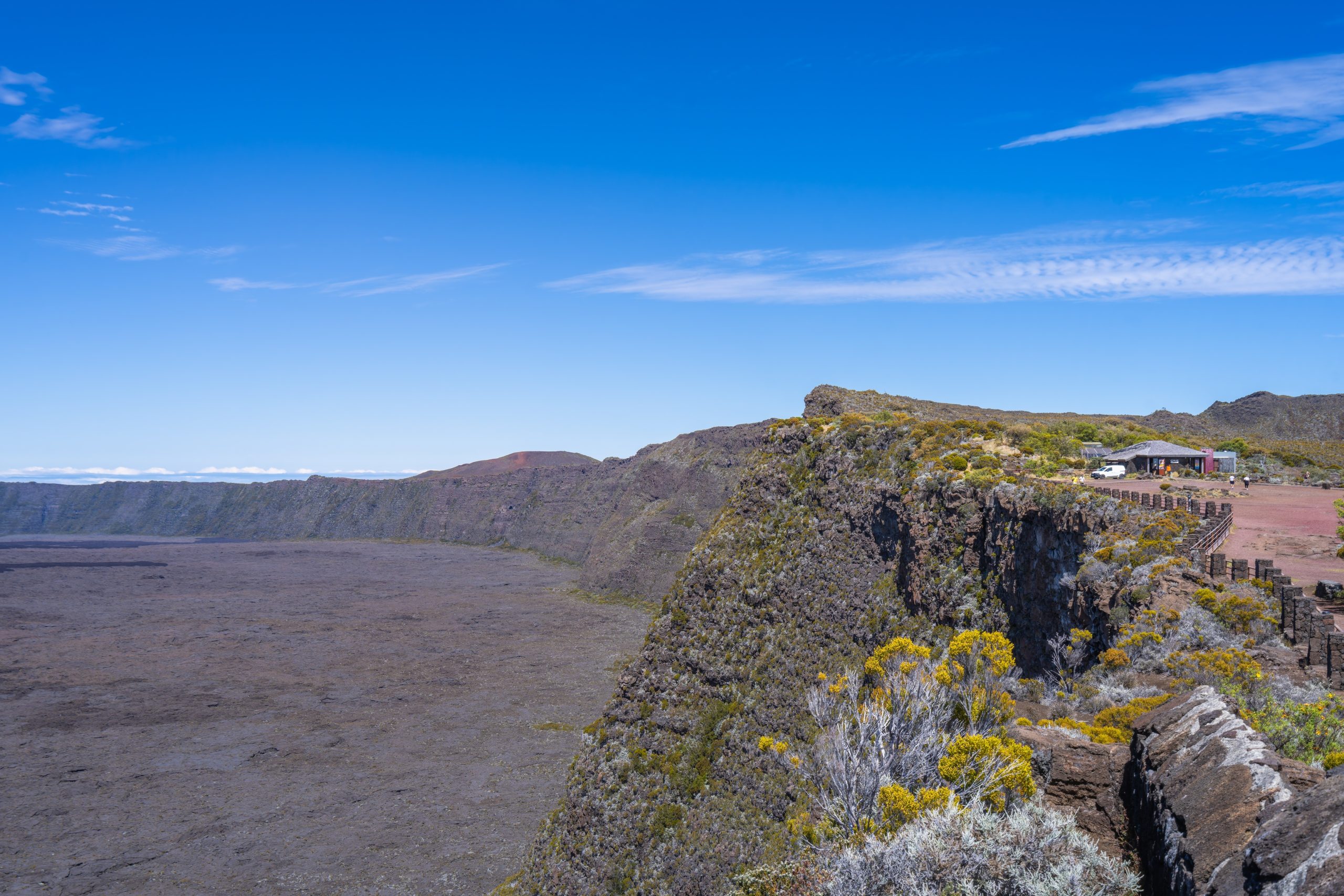 Desde las tierras altas de Bourg-Murat (1.600 m aprox.), el sendero se abre paso entre praderas y antiguos flujos de lava, en un ambiente que anuncia la proximidad del Piton de la Fournaise. La ruta asciende suavemente hasta alcanzar el Belvédère du Nez, un mirador espectacular que se asoma al borde de la gran depresión. Desde aquí, las vistas se extienden sobre las Hautes Plaines y el universo mineral del volcán, ofreciendo una perspectiva única de la isla.