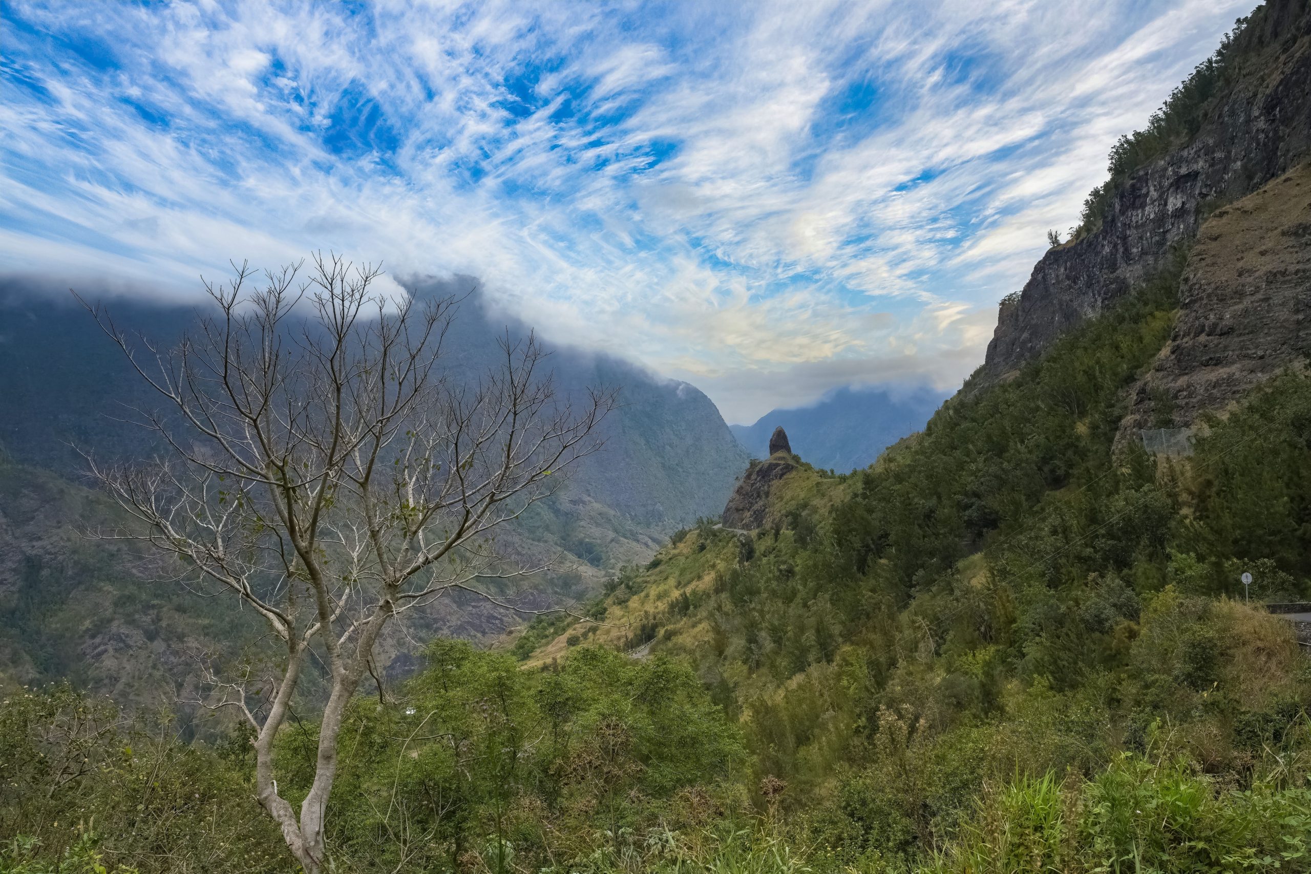 Al alcanzar el collado, se abre un nuevo horizonte: el circo de Cilaos aparece al otro lado. El descenso es prolongado, con algún que otro tramo equipado con pasamanos que facilitan el paso.