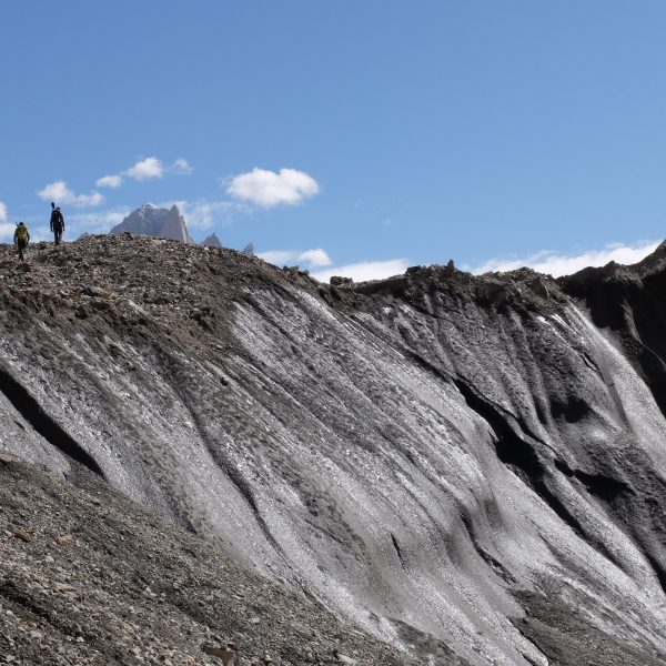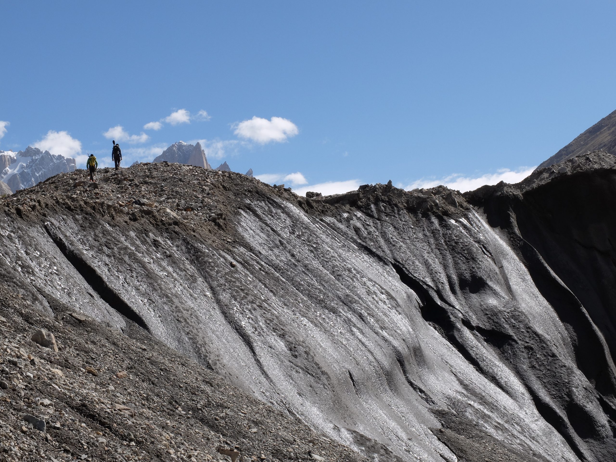 Cruzaremos el glaciar Yutmaru, lo que nos llevará unas 2 horas. Para alcanzar a continuación una cuenca morrénica paralela al glaciar que nos acompañará prácticamente todo el camino de hoy hasta alcanzar el campamento Bitanmal.