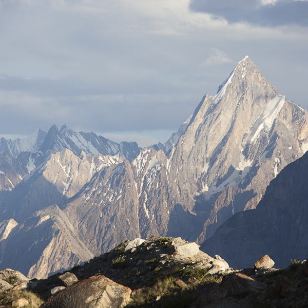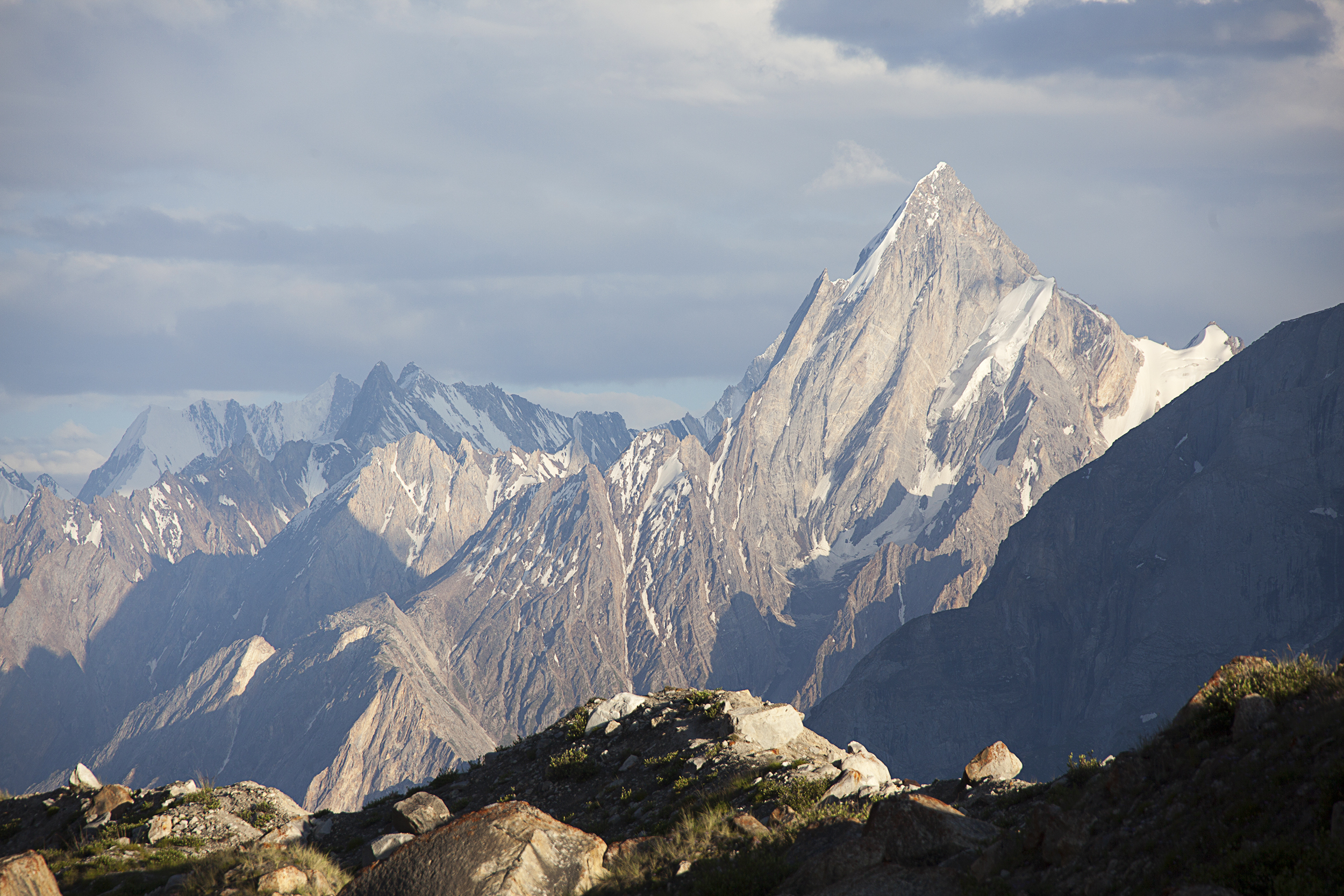 Desde aquí, nos recompensan las impresionantes vistas de Kanjut Sar, un majestuoso pico que se eleva a 7.760 metros de altitud.