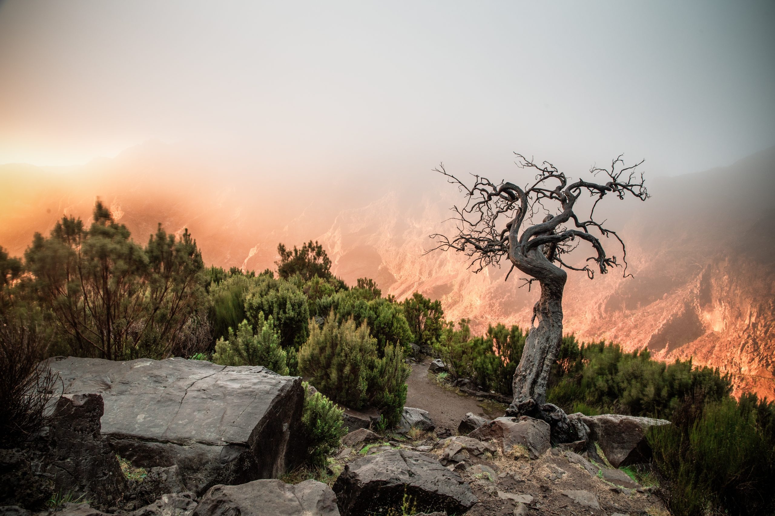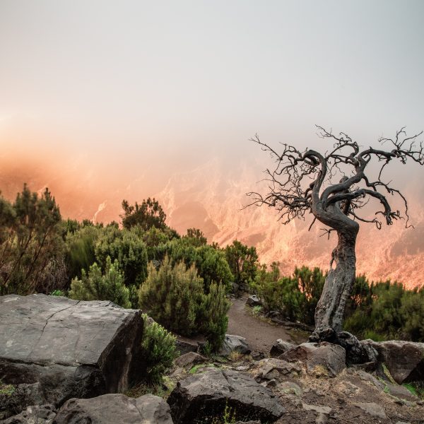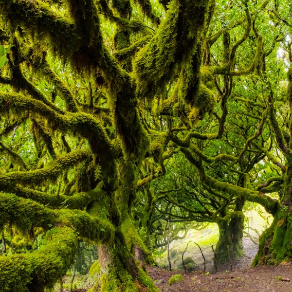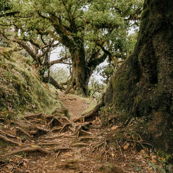 La travesía comienza en el altiplano de Paul da Serra, un paisaje abierto y ondulado que contrasta con la exuberancia verde que nos espera más adelante. Desde aquí nos adentramos en la Vereda do Fanal, uno de los rincones más mágicos de Madeira, donde los bosques de laurisilva —Patrimonio Mundial de la UNESCO— nos envuelven en un ambiente de misterio y belleza ancestral. Los viejos tilos y laureles, cubiertos de musgo y niebla, crean un escenario único que parece sacado de un cuento.