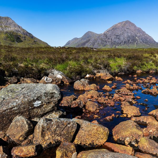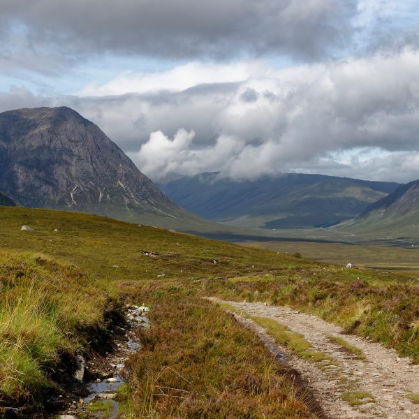 La travesía de Rannoch Moor es una de las etapas clásicas del West Highland Way, siguiendo la línea de la Parliamentary Road de Telford a través de una vasta extensión de brezos y ciénagas, rodeada de imponentes montañas. Con buen tiempo, este lugar es de una belleza sobrenatural. El terreno es fácil de pisar, ideal para recuperar energía sin perder el contacto con la belleza natural de las Highlands.