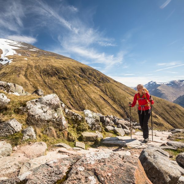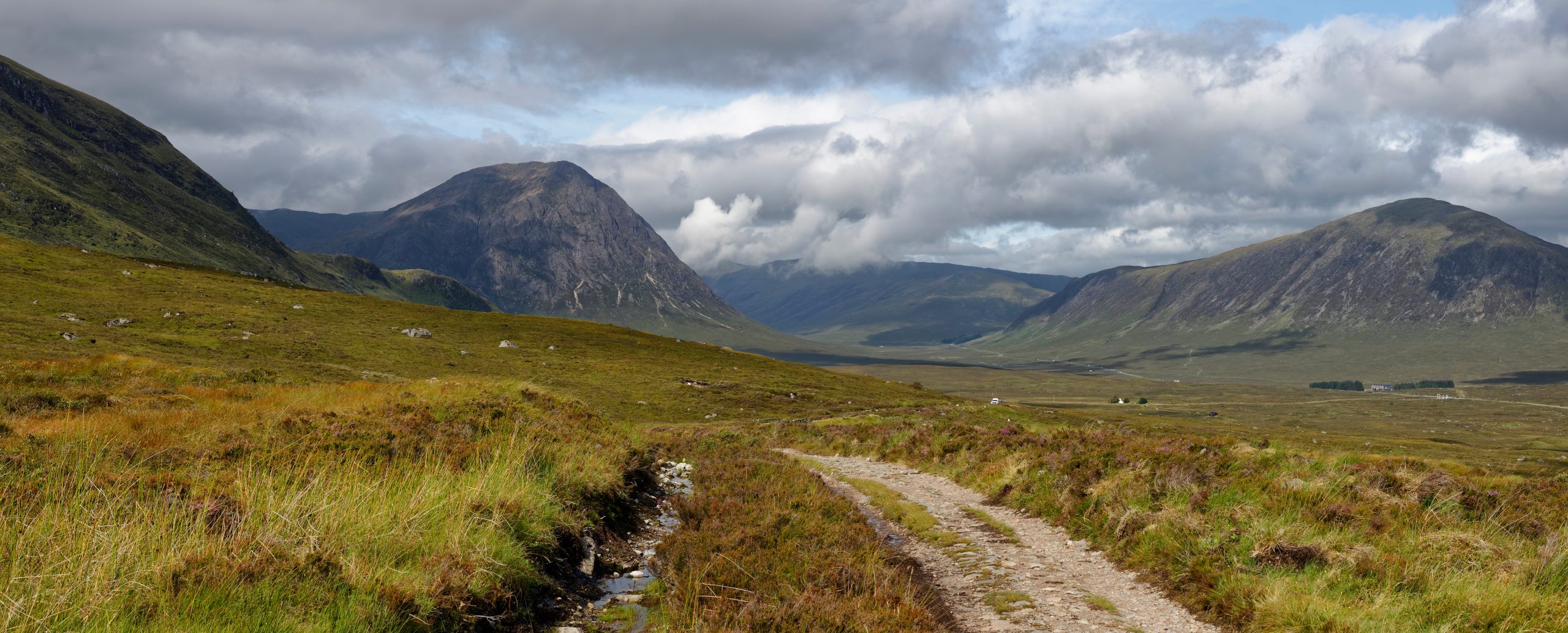 En un día despejado, este es quizás el tramo más espectacular del West Highland Way, ya que asciende hasta el punto más alto de la ruta con fabulosas vistas de las montañas Glencoe. El tramo de alta montaña puede ser expuesto con mal tiempo, pero el largo descenso, con excelentes vistas, hasta Kinlochleven es fácil de seguir.